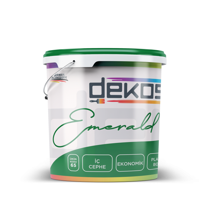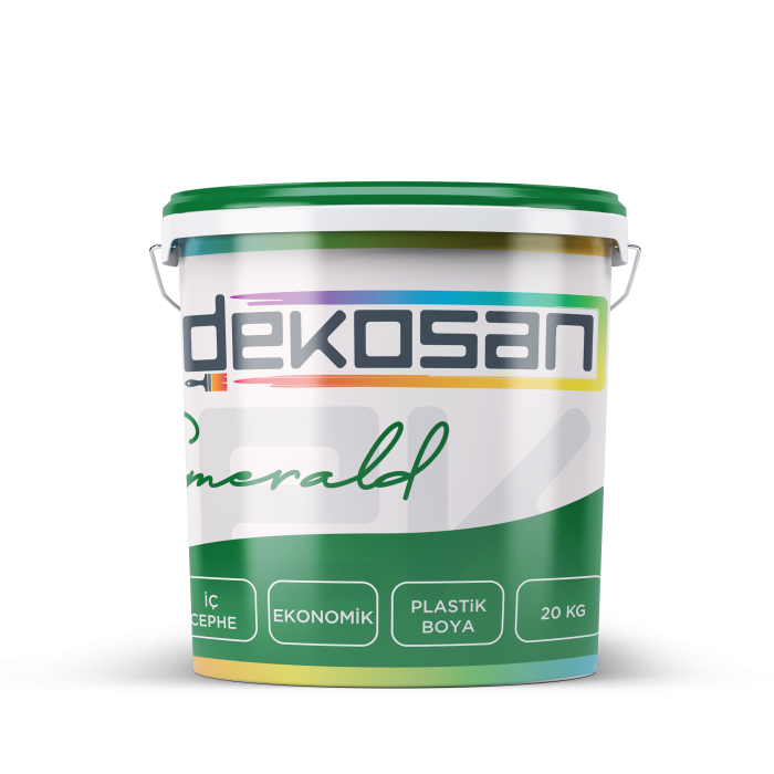 ÖzelliklerMat ve pürüzsüz görünüşe sahip olan DEKOSAN EMERALD EKONOMİK PLASTİK BOYA, yüksek kapatma gücüne sahip iç cephe boyasıdır. Su bazlı olması nedeniyle insan sağlığı ve çevreye zarar vermez, rahatsız edici bir kokusu yoktur. Renkleri uzun yıllar boyunca canlılığını korur.